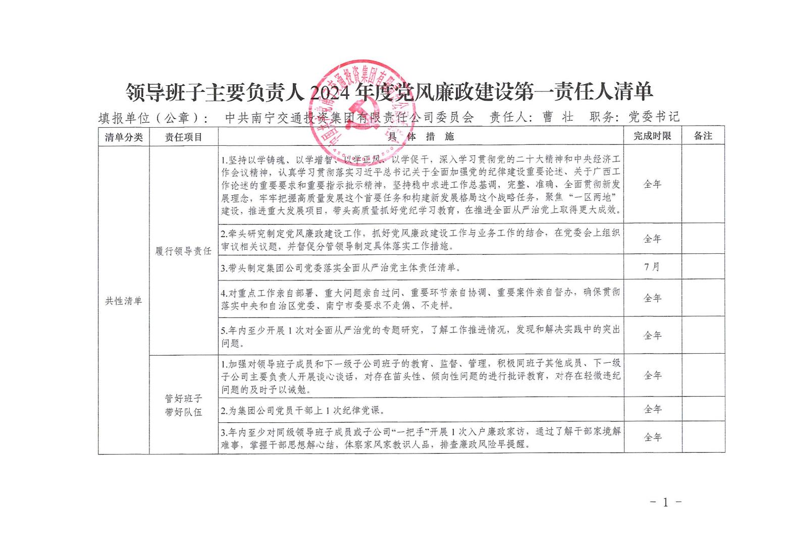 領(lǐng)導(dǎo)班子2024年度黨風(fēng)廉政建設(shè)主體責(zé)任清單