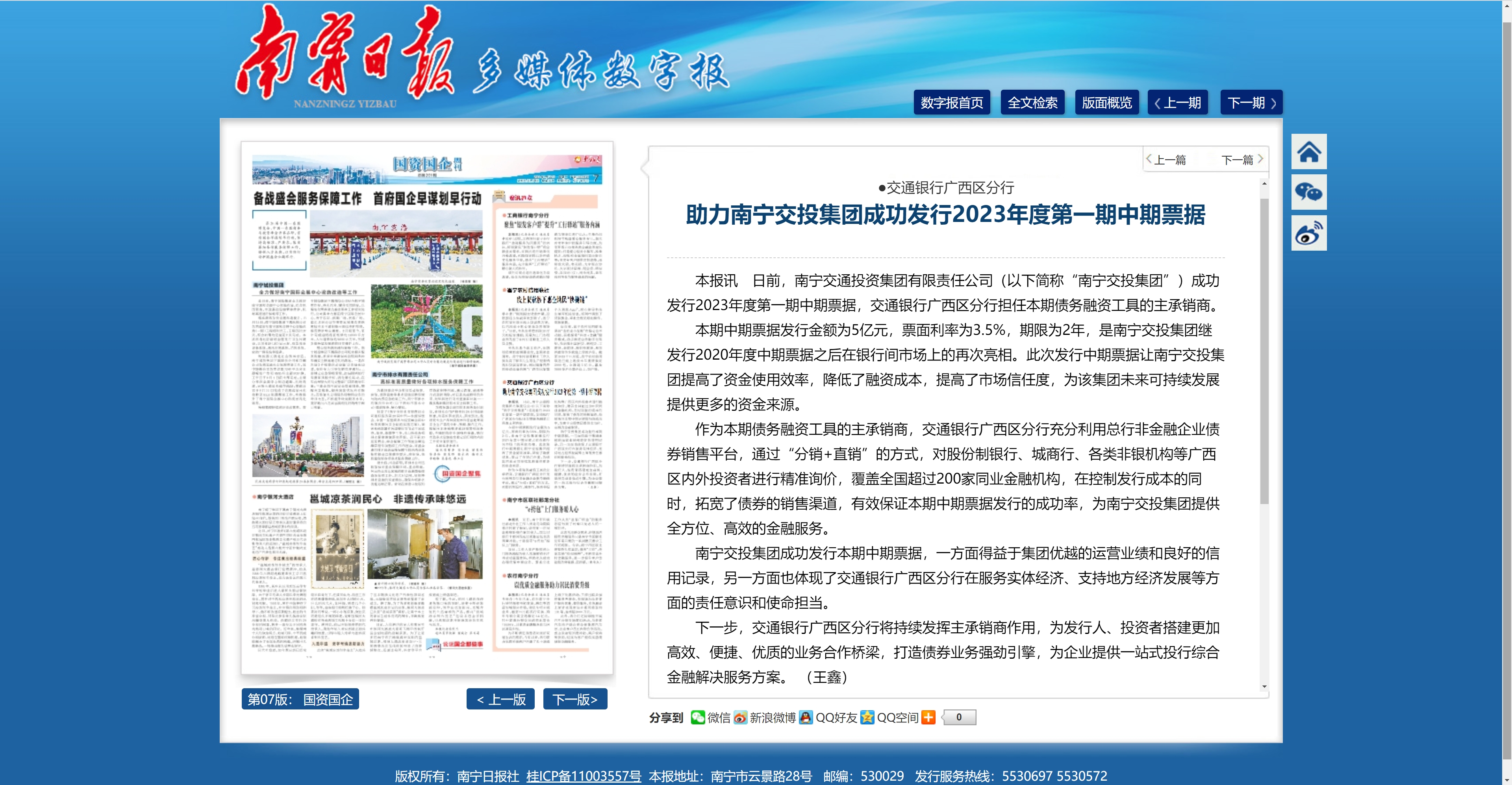 交通銀行廣西區(qū)分行助力南寧交投集團成功發(fā)行2023年度第一期中期票據(jù)